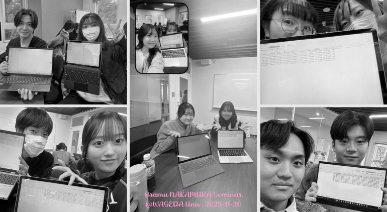 2025 11.20 コンピュータ・コーディング進めてます Selected, 学部3年ゼミ ある日、早稲田で、コンピュータ・コーディング.. だいぶ進んできました! Post Share LINE RSS note 前の記事 次の記事 関連記事 2年1月イベント 2025学部忘年会 大学院ゼミ忘年会 新2年ゼミ生歓迎会 ゼミ同窓会 2年12月イベント 計量テキスト分析のチーム 2年プレ演習のチーム分け 卒論のコーディングをお手伝い コメントは利用できません