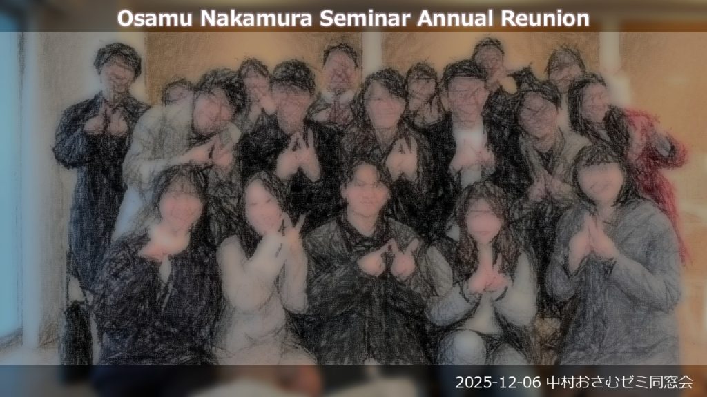 2025 12.06 ゼミ同窓会 Selected, イベント, 研究室から 今日は同窓会。たくさんの人が来てくれてうれしい限りです。みなさんの顔をみて元気をいただきました。またぜひ来年もお越しください! 今回はスケッチ画風で。 Post Share LINE RSS note 前の記事 次の記事 関連記事 2年1月イベント 2025学部忘年会 大学院ゼミ忘年会 新2年ゼミ生歓迎会 2年12月イベント 計量テキスト分析のチーム 2年プレ演習のチーム分け コンピュータ・コーディング進めてます 卒論のコーディングをお手伝い コメントは利用できません